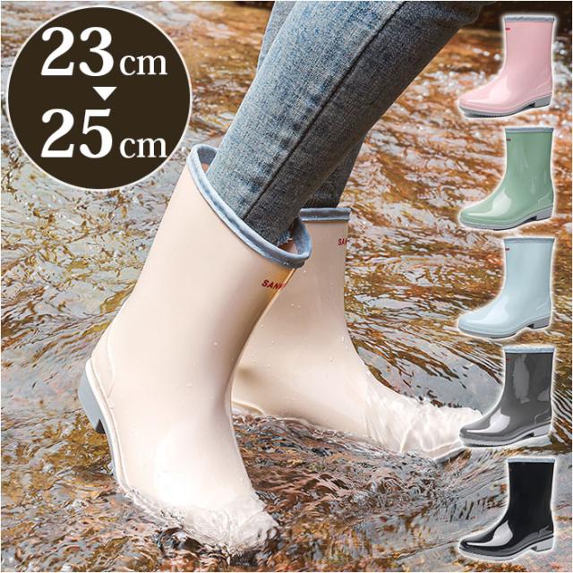 レインブーツ ショート レディース 通販 レインシューズ 長靴 レイン ブーツ ショートブーツ ミドル 丈 防水 滑り止め 雨靴 雨 雪 通学 通勤 おしゃれ かわいい シンプル 雨具