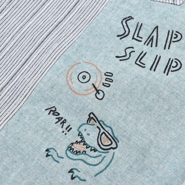 恐竜がノリノリで音楽を楽しんでいるプリントでお出かけも楽しんじゃお。