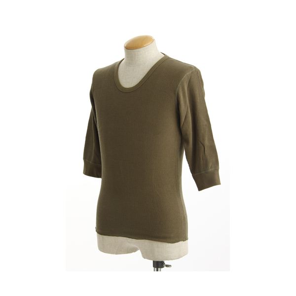 防寒用アンダーウェアとして代表的なサーマル素材。このロンTは、上質なコットン糸をワッフル状の凹凸に編み立てることによって、体温で温められた“デットエア"を蓄える空気層を大幅に確保。通常の長袖Tシャツより優れた保温力を発揮するんだ。さらに、汗の吸収もバツグン!素肌に心地よいコットン素材だから、フンワリと柔らかい着心地が楽しめるぞ。イヤな静電気が起きにくいのも◎。安いサーマルは数回着ただけでビロ〜ンと伸びちゃうけど、こいつはガシガシ洗濯しても形キープ!今回は五分袖と長袖の2種類を入荷。