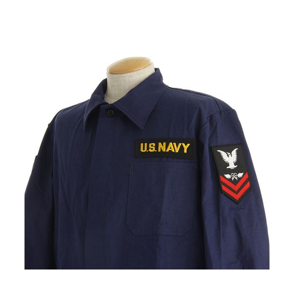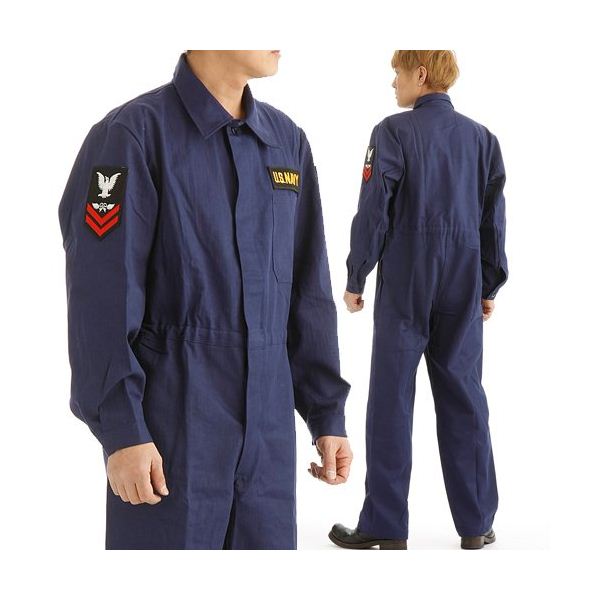 商品仕様: アメリカ海軍 米軍 紋章入り ヘリンボーン ワーカー カバーオール M ネイビー 綿100% つなぎ ミリタリーウェア 軍モノ