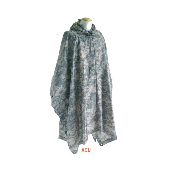 商品仕様: ミリタリー ナイロン ポンチョ フリーサイズ ACU 防水加工 収納ポーチ付 折りたたみ可 軽量 レインウェア 雨具