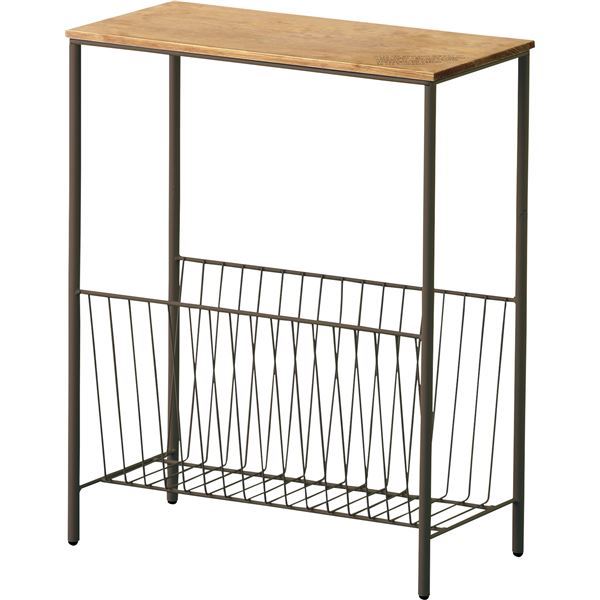 商品仕様: サイドテーブル ミニテーブル 約幅40cm ブラウン 茶 木製 アイアン マガジンラック 収納棚付き 完成品 リビング インテリア家具
