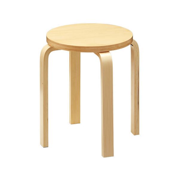 木のぬくもりを感じるシンプルな木製丸椅子。あたたかみのあるナチュラルカラー。重ねてコンパクトに収納できるスタッキング機能付き。4脚までスタッキングできます。リフレッシュスペースや食堂などにも置ける作業用チェアです。