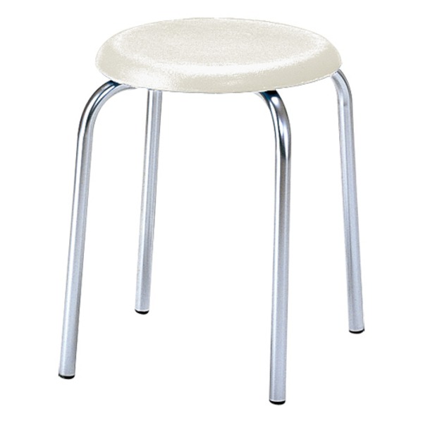 1.8kgと軽量で扱いやすいスタンダードタイプの丸椅子「R-303C」ベージュ。清潔感のある明るいベージュ。座は樹脂製なので汚れても簡単に水ぶきできていつでも清潔に使えます。クロームメッキ脚のシンプルなデザインで置く場所も選びません。6脚までスタッキング可能。