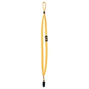 胸ポケットなどに固定できるクリップ付き。裏返しになりません。荷重がかかるとひもがはずれる安全パーツ付き。長さ調節可能。