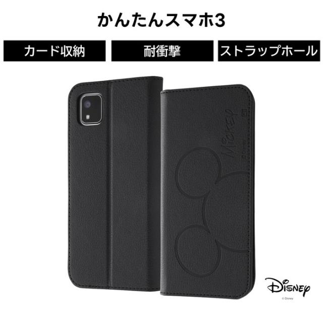 かんたんスマホ3 『ディズニーキャラクター』/耐衝撃 手帳型レザーケース シンプル/ミッキーマウス。