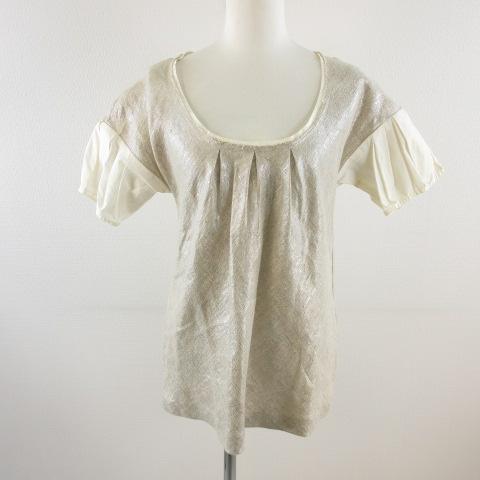 【中古】ミントジョディアーノルド シャツ 半袖 ツイード 切り替え リネン ベージュ オフホワイト 2 レディース