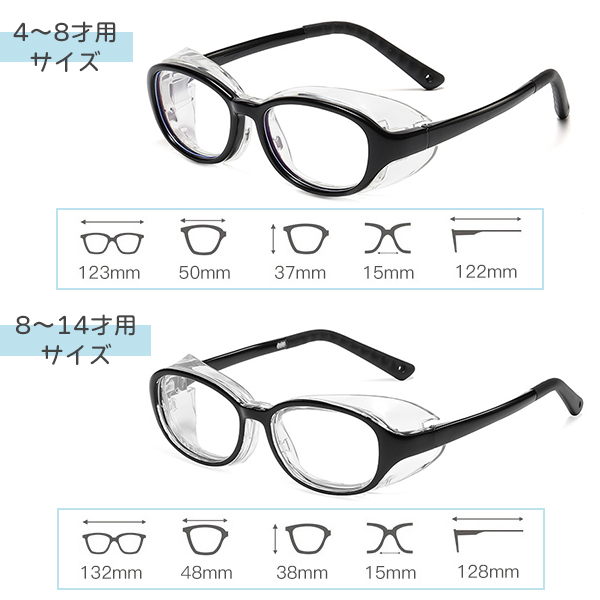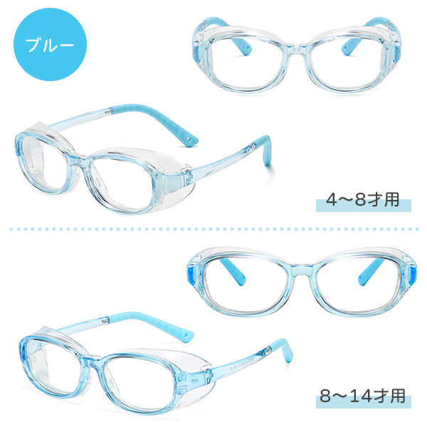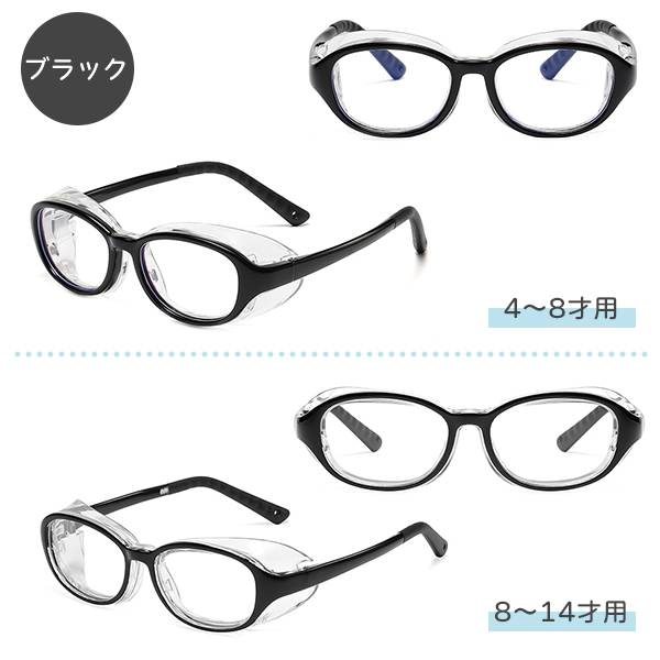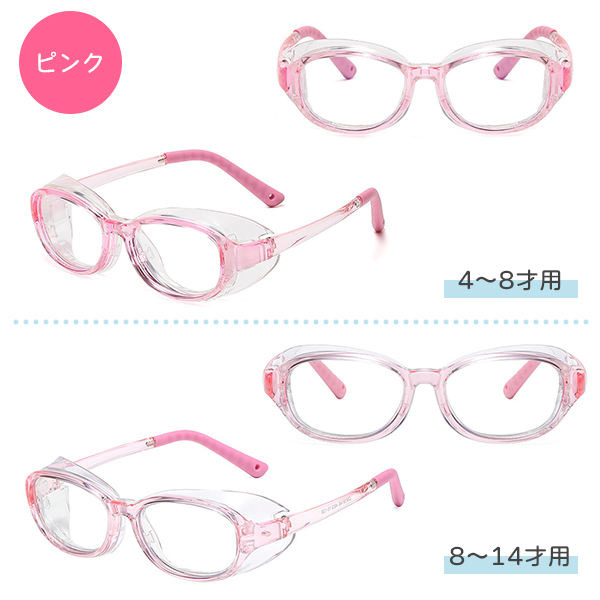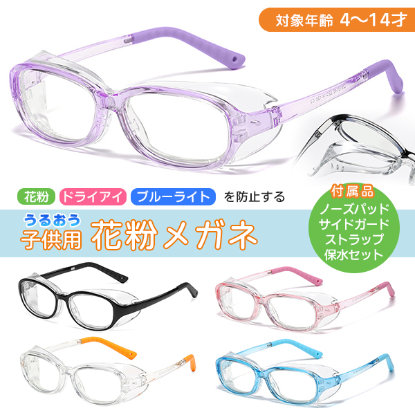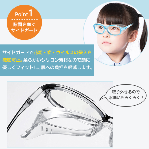 花粉や埃、ウイルスなどの侵入を防ぐ!お子様の目を守るサイドガード付きメガネセットです