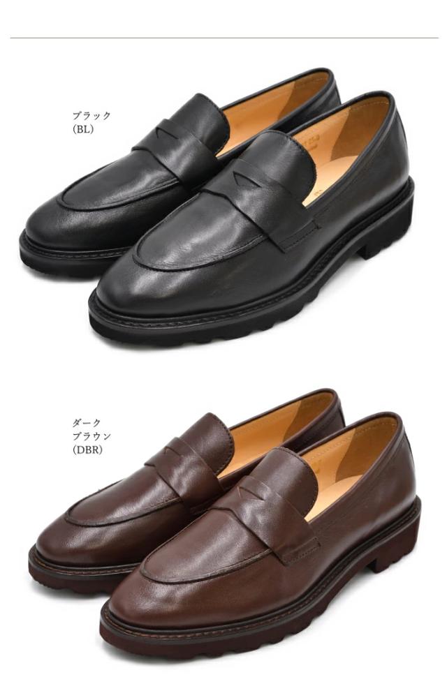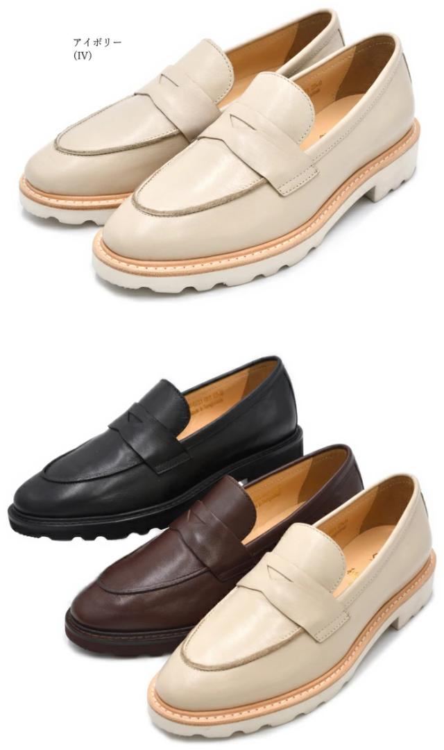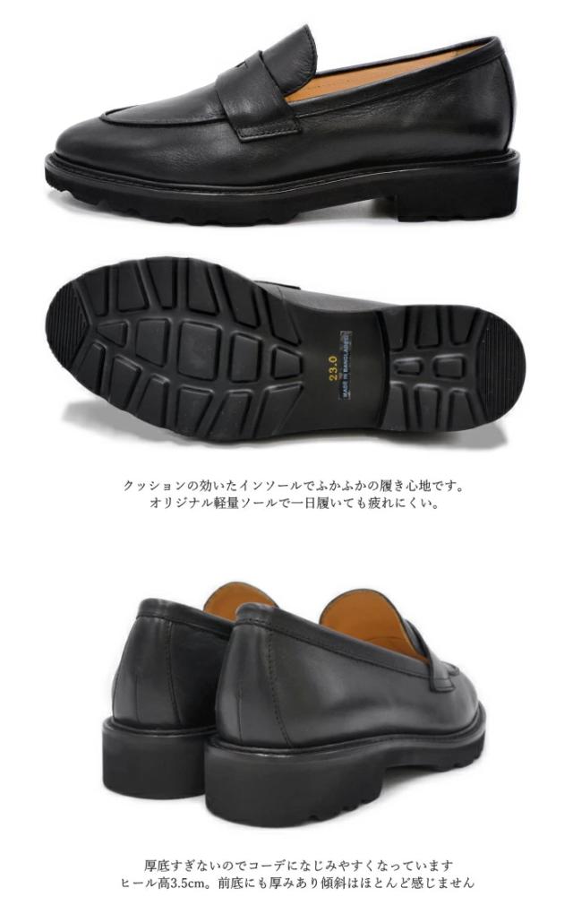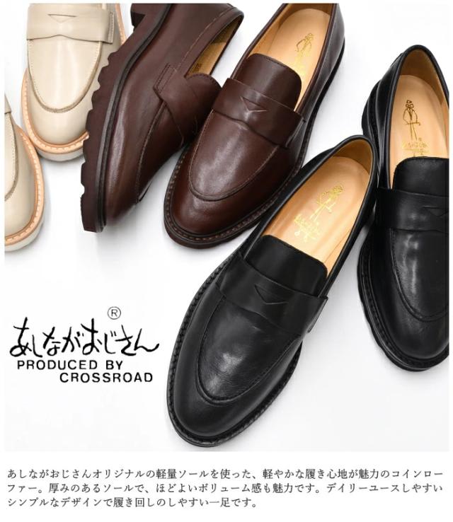 あしながおじさんオリジナルの軽量ソールを使った、軽やかな履き心地が魅力のコインローファー。 厚みのあるソールで、ほどよいボリューム感も魅力です。デイリーユースしやすいシンプルなデザインで履き回しのしやすい一足です。