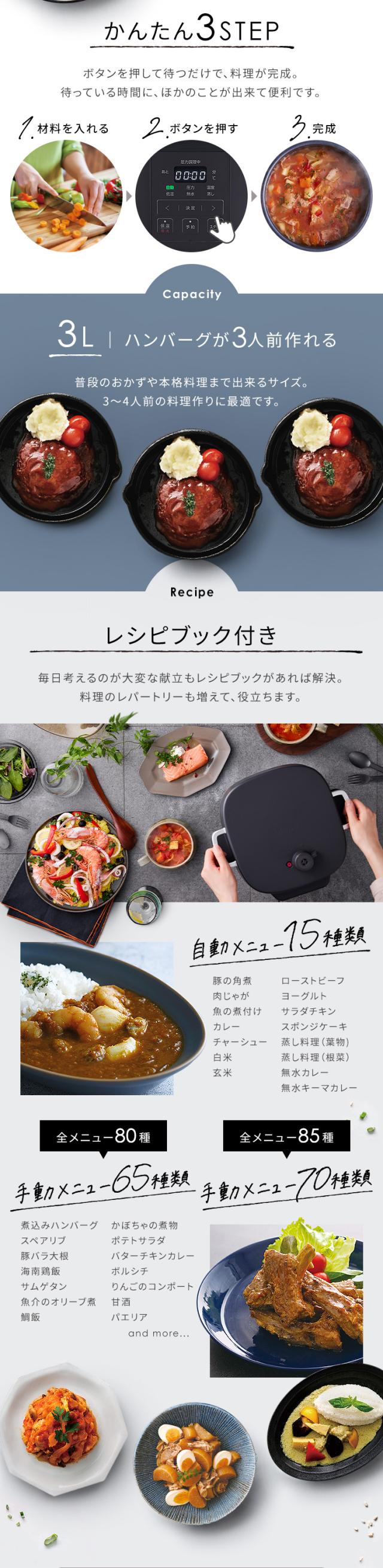 計80〜85種のレシピブック付きで初心者でも安心。