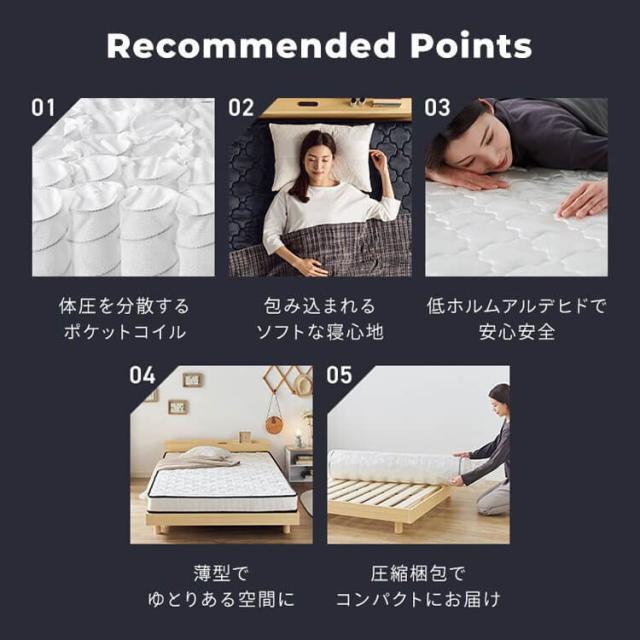 \1500円OFFクーポン!~3/24 9:59/マットレス ポケットコイル ベッド ポケットコイルマットレス 14cm D PKMT14N-D 寝具 10層構造 通気性 ダブル 体圧分散 圧縮梱包 新生活 送料無料