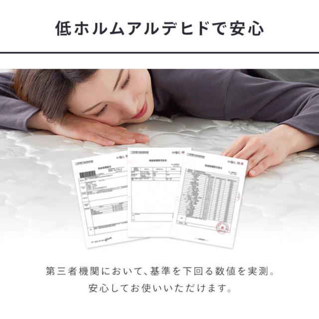 側生地/表・サイド:ポリエステル100%、裏:不織布(ポリプロピレン100%)、充填物:ポケットコイル、ウレタンフォーム