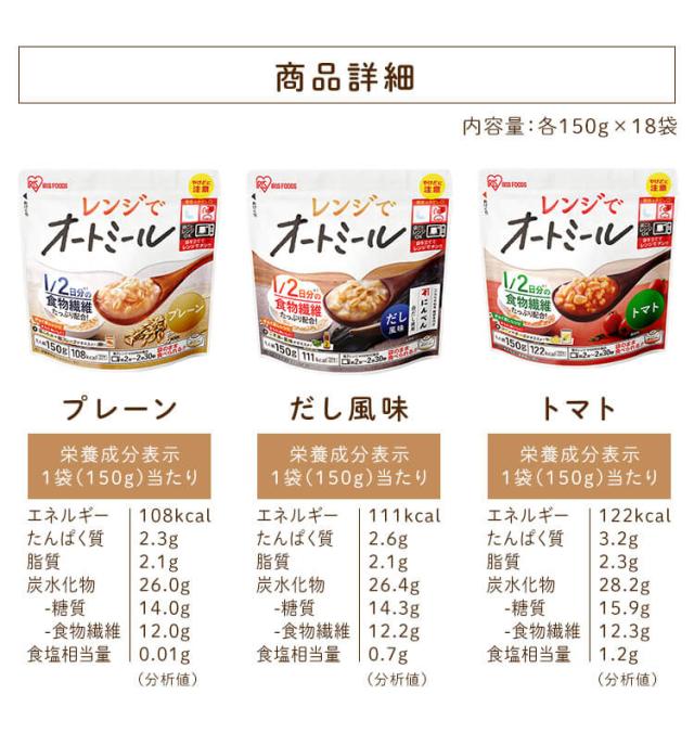オートミール リゾット 18食セット 150g レンジでオートミール 全4種類 リゾット お粥 プレーン だし風味 トマト アイリスオーヤマ アイリス リゾット風 おかゆ レトルト オーツ麦 レンジ対応 簡単 手軽 食物繊維 アイリスオーヤマ