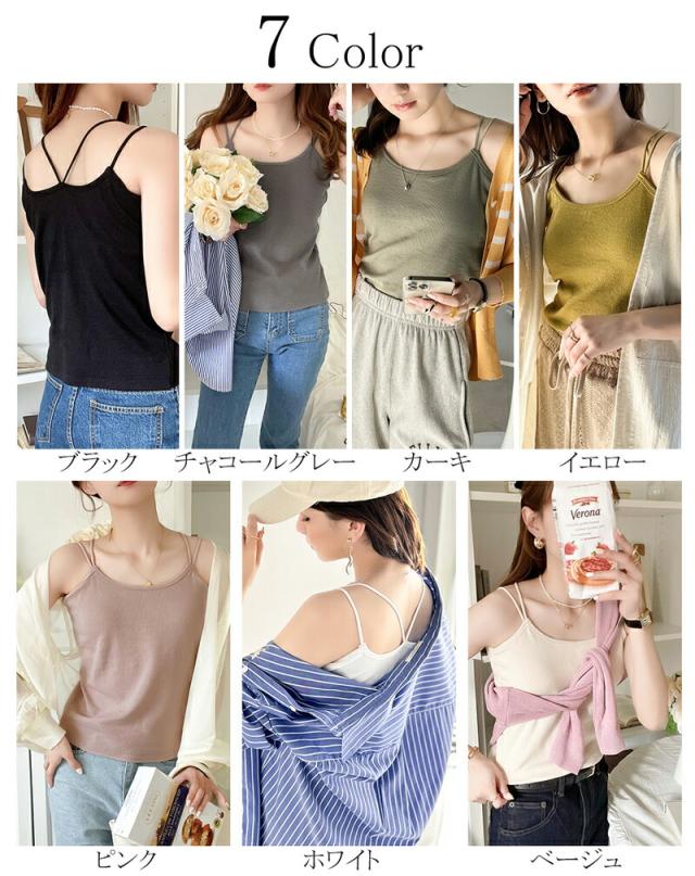 冬新作 クラシカルエルフ トップス キャミソール レディース Wストラップ カップ付 棉混 リブ 素材 キャミ 華奢見え ストレスフリー さらっと 涼しい レイヤードコーデ インナー カラバリ豊富 大きいサイズ 2023ss ce1020076
