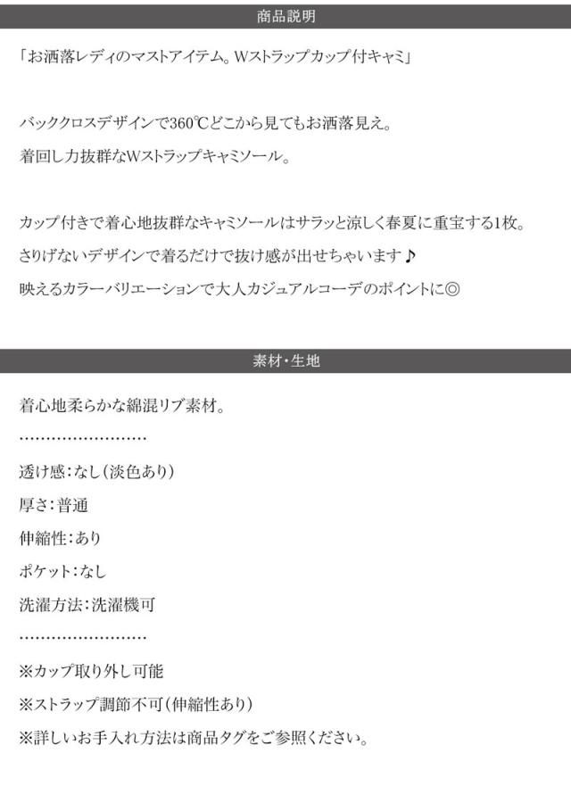 ★お洒落レディのマストアイテム。Wストラップカップ付キャミ★