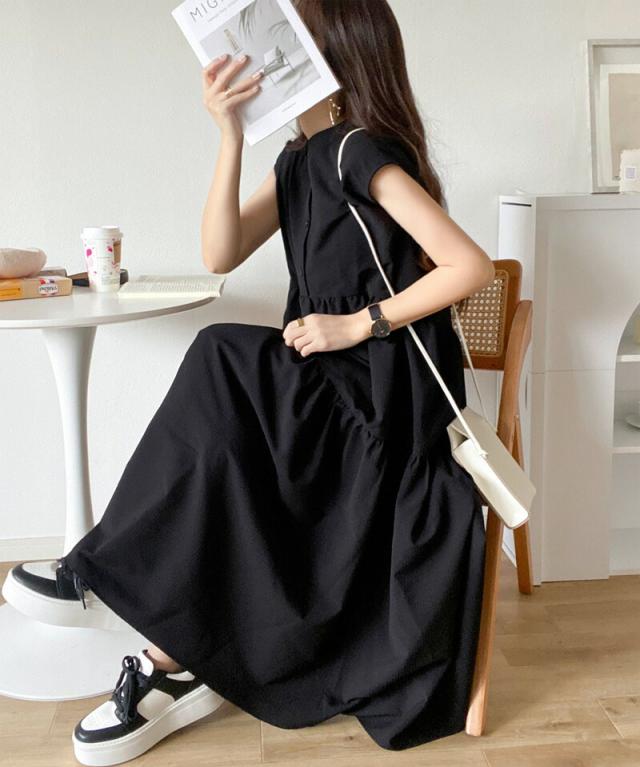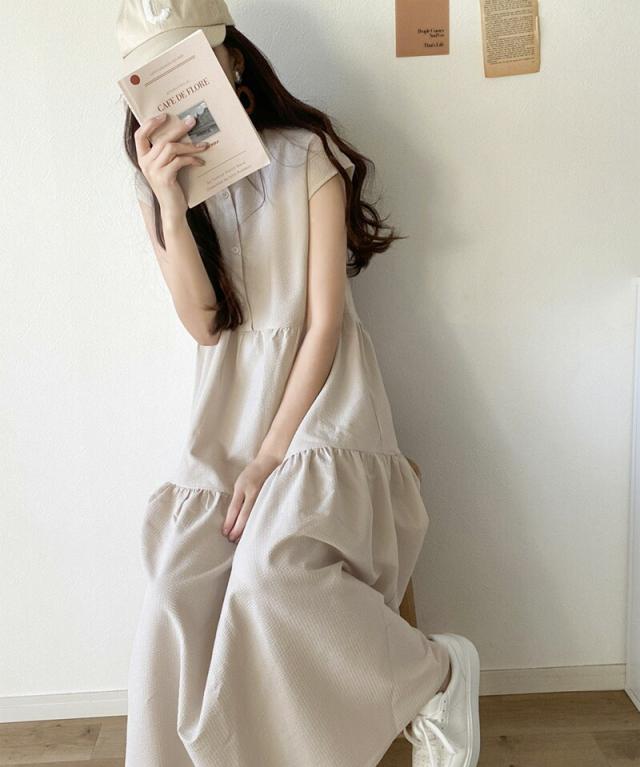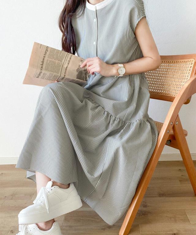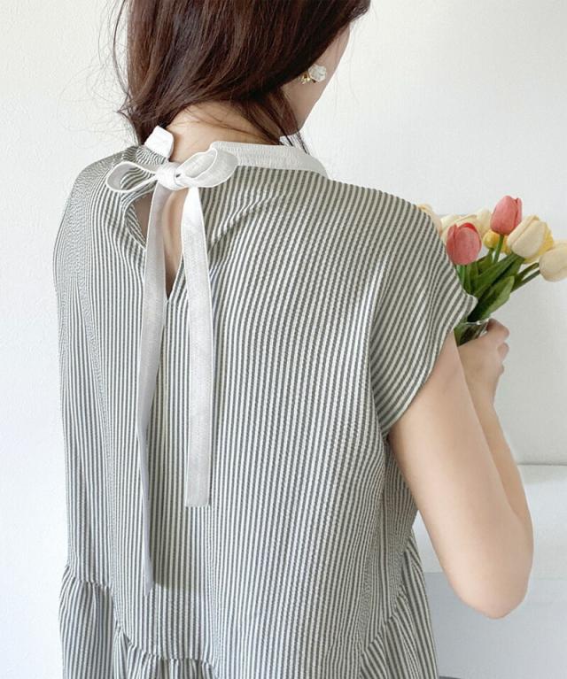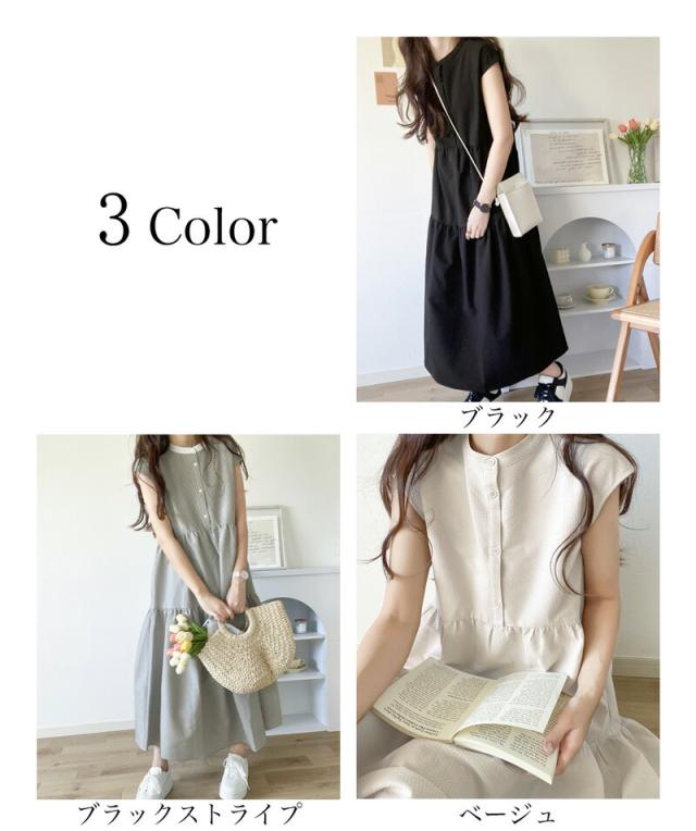 春新作 クラシカルエルフ ワンピース レディース シャツワンピース バックリボン ティアード Aライン ストライプ 無地 フレンチスリーブ ロング マキシ 体型カバー ゆったり 半袖 袖なし 大きいサイズ 小さいサイズ 2026ss ce1070036