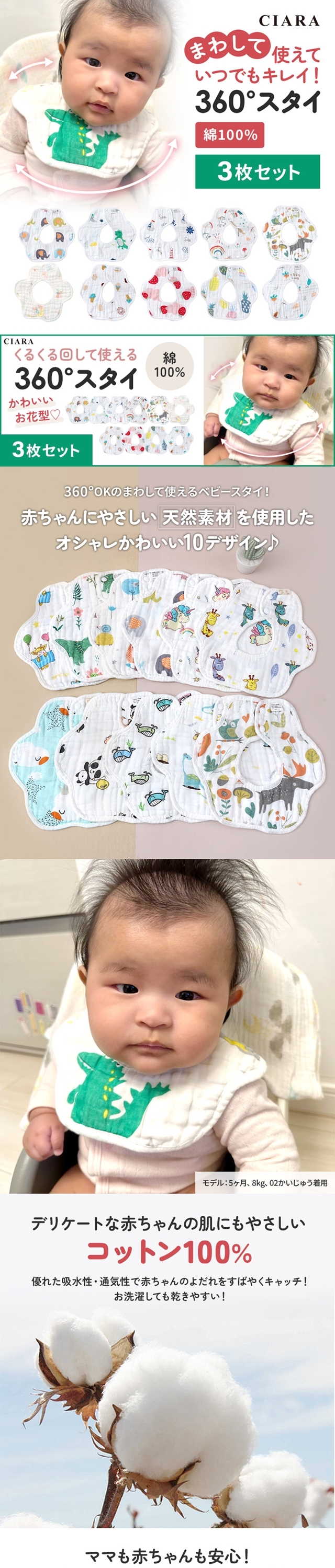 よだれかけ 涎掛け スタイ ベビースタイ セット 3枚 360度 360° キッズ 子供 未使用 ベビー 赤ちゃん 男の子 女の子 男女兼用 0歳 1歳 綿 綿100% リバーシブル 裏表 撮影 こどもの日 お宮参り ホワイトデー お返し 新生活 かわいい 可愛い おしゃれ キュート シンプル 春 夏 秋 冬 送料無料 保育園 幼稚園 お揃い お着替え 普段使い 入園 入園準備 入園準備セット 入園グッズ 入園セット 通園 お散歩 お出かけ 公園 安い 人気 イベント お祭り 子供会 町内会 ポイント消化 福袋 プレゼント プレゼント交換 お得 ギフト プチプラ プチギフト 内祝い 誕生日 CIARAポーチ雑貨屋 セール シアラ OEM 大量注文 ネスリーフ 2026 遅れてごめんね