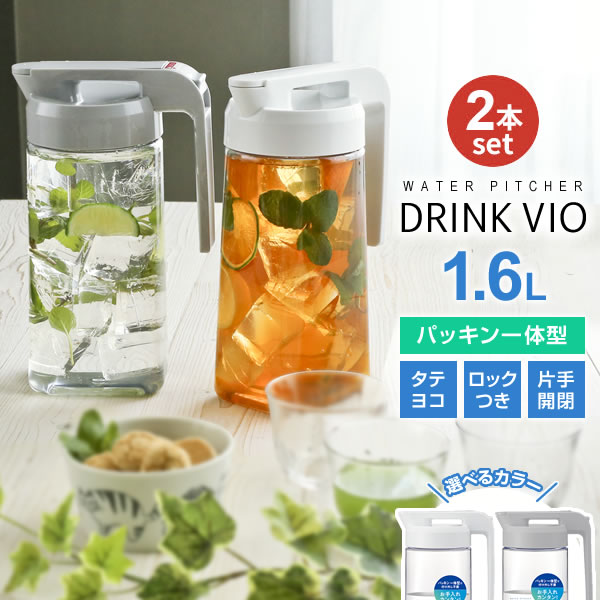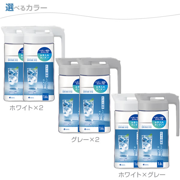 麦茶ポット ドリンク・ビオ S1600WL 1.6L カラーが選べる2本セット ホワイト/グレー | 横置き 洗いやすい 冷水筒 麦茶入れ ピッチャー ジャグ 広口 水差し タテヨコ置ける 約2L
