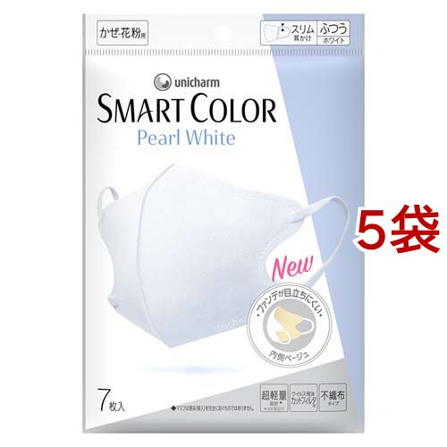 SMART COLOR PearlWhite ふつう 不織布マスク(7枚入*5袋セット)[立体マスク]