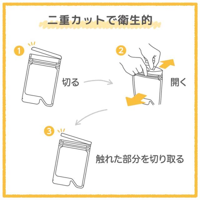 パックの開封時、指が触れる部分は切り取れます。