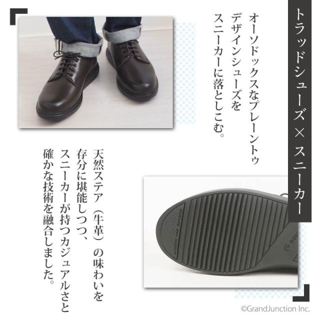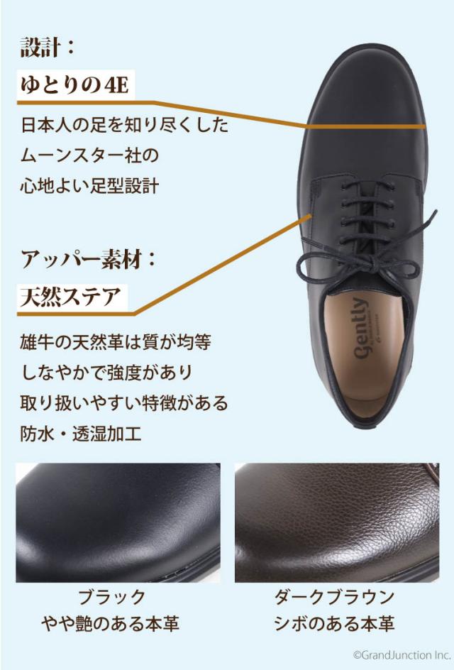 革靴 カジュアル メンズ 本革 トラッド シューズ レースアップ スニーカー プレーントゥ ムーンスター gently world march/ GE206 MNS055 レザー 父の日