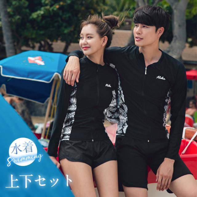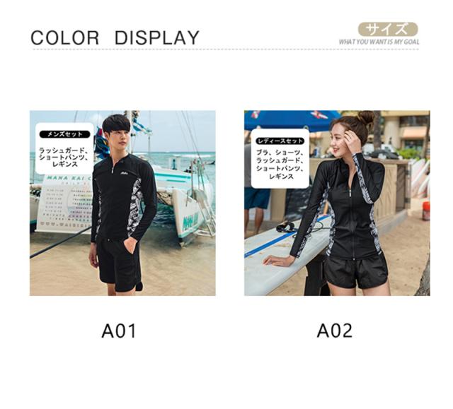 水着 ペアルック レディース メンズ 上下セット 女5点男3点 ラッシュガード フィットネス水着 水陸両用 紫外線対策 カップル