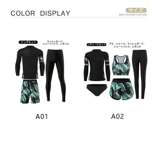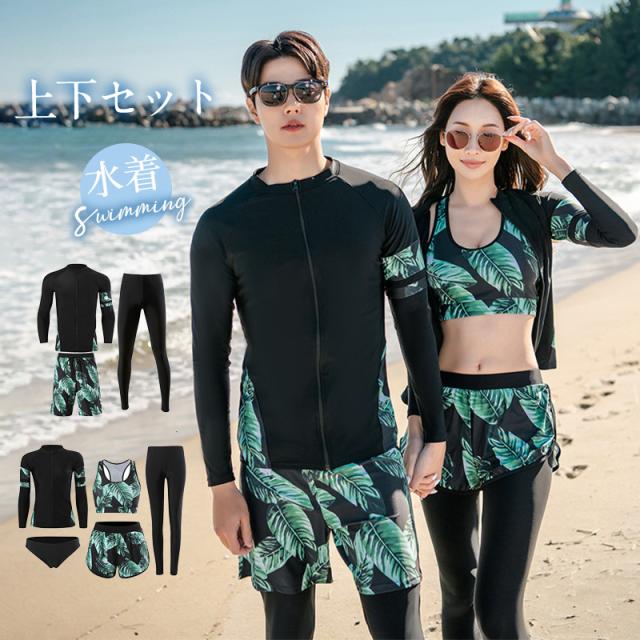 水着 ペアルック レディース メンズ 上下セット 女5点男3点 ラッシュガード フィットネス水着 水陸両用 紫外線対策 カップル