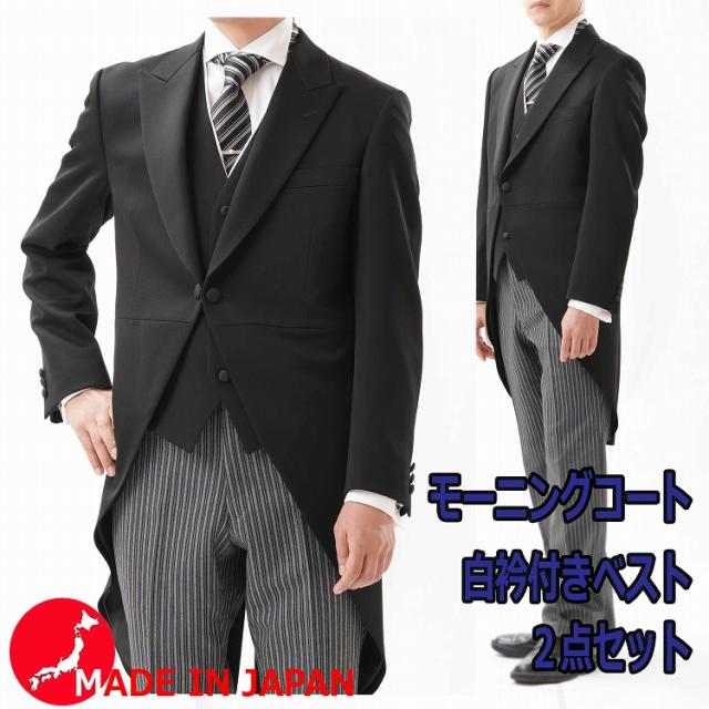 夏物 日本製ブラックモーニングコート&白襟付きベスト RM17604 上着&白衿付き A体からB体まで ※パンツは別売りです。サマー