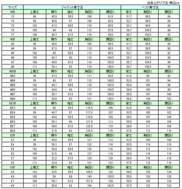 BE体型とBB体型のサイズの出来上がり実寸法は同じ寸法となっておりますので予めご了承ください。