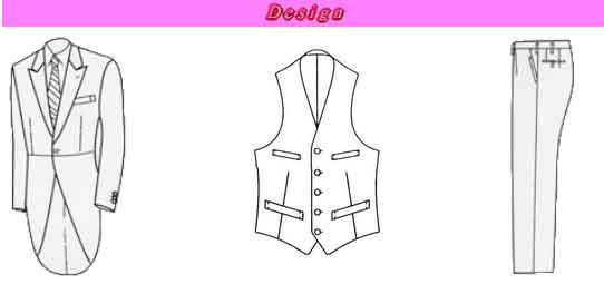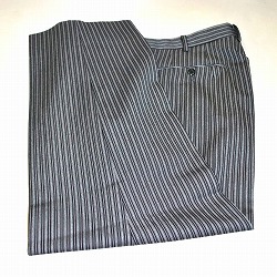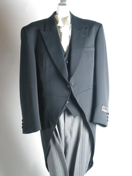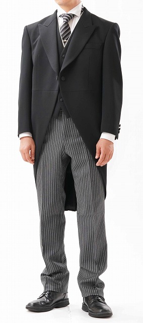 モーニングコートとベストはブランド:ミユキテックス。縞パンツはレギュラースタイルのワンタック仕様のブランド:スーパーテックスのコラボセットになっています。