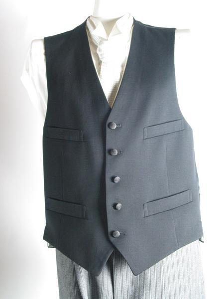 MIYUKITEXの白えり付きベスト付モーニングコート & SUPERTEXのアジャスター付きワンタック縞パンツ 3点セット |