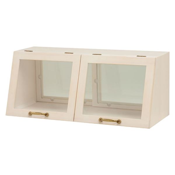 商品仕様: キッチン収納 約幅60cm×奥行25cm×高さ25cm ホワイト 白取っ手 引き戸付き 木製 カウンター上 ガラスケース 調味料ラック