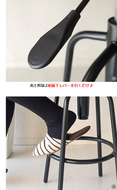 お部屋に馴染み見やすいシンプルデザインで、バーチェアやカウンターチェア、作業用スツールなどご自由にお使いください。