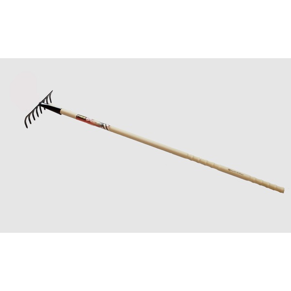 商品仕様: ミニレーキ/熊手 【8爪 ロング柄】 木製柄 スチール製 ミニスチールレーキ8爪 ウェイビーロング柄 1200