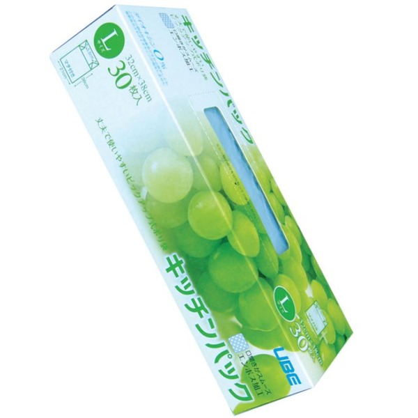 ●□1枚のサイズ・縦38×横21×マチ11cm 厚さ0.01mm □箱のサイズ(約)・22×8×高さ5cm □耐冷温度・マイナス30度 □原料樹脂・ポリエチレン □品名・キッチンパック L 30P □用途・袋 食べ物の保存 □キーワード・ぽりぶくろ ビニール袋 びにーるぶくろ ふくろ 包装 収納 大きいサイズ □シリーズ名・キッチンパック □メーカー名・宇部フィルム株式会社 □入数・30枚