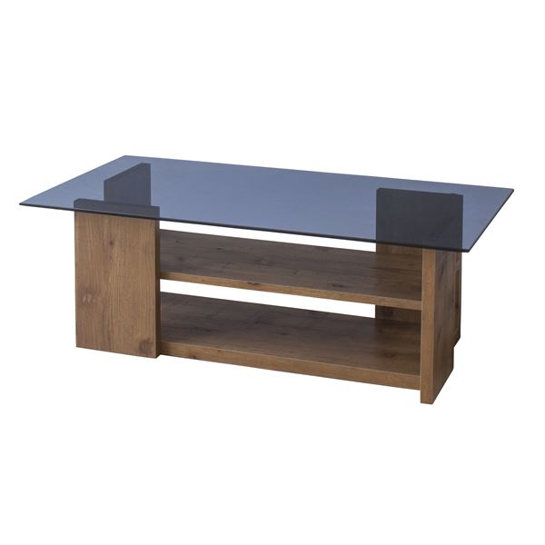 スタイリッシュなガラス天板と、温かみのある木目調プリントのブロック脚 シンプルなデザインで、お部屋に取り入れやすいセンターテーブルです。