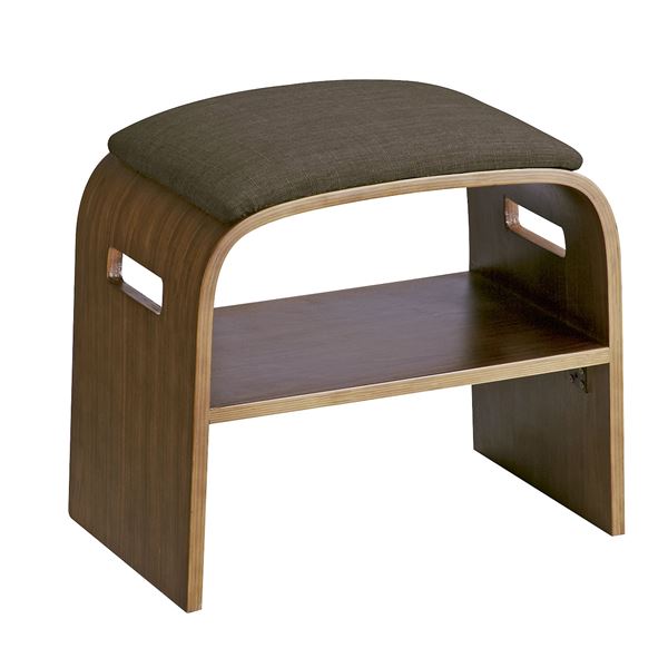 商品仕様: 玄関椅子 スツール 幅47cm ブラウン 茶 曲げ木 コンパクト 木製×ファブリック 座面下収納 取っ手付き 完成品 リビング