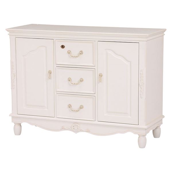 商品仕様: キャビネット リビング収納 幅110cm 木製 脚付き 鍵付き 引き出し収納 扉収納 ヨーロピアン調 リビング ベッドルーム