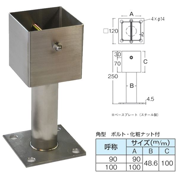 商品仕様: ステンレス装飾柱受(ポーチ受) デラックス 90角【0205-00067】