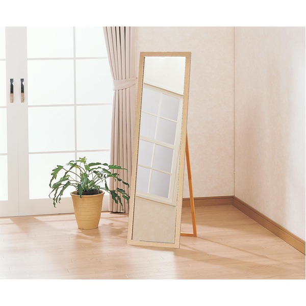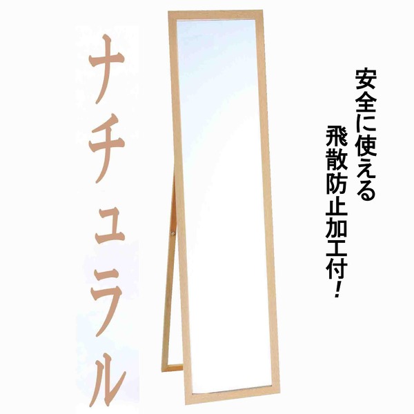 ウォールミラー 全身姿見鏡 〔 スタンド付き 〕 高さ119cm 飛散防止加工 壁掛けひも付き ナチュラル 日本製 国産 送料無料