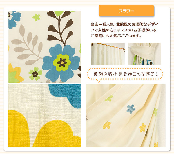 商品仕様: 間仕切りカーテン / 幅60-110×丈178cm グリーン 緑 花柄 / フック リングランナー付き 『ラウンドアイリ』 九装