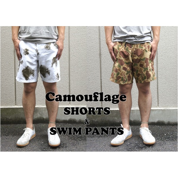カモフラージュ柄のミリター満点の個性豊かなショート&スイムパンツです。