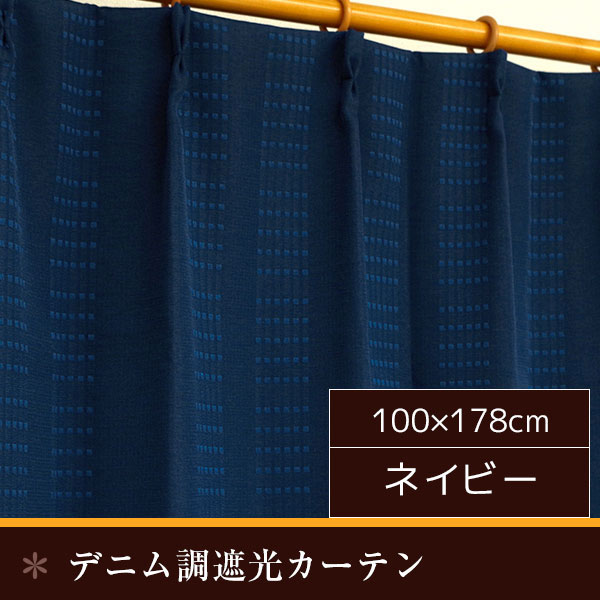 デニム 遮光カーテン / 2枚組 100×178cm ネイビー / 洗える ウォッシャブル 形状記憶 『オーチャード』 九装 送料無料