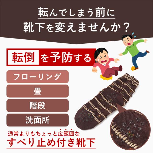 - 母がフローリングでよく滑って転倒するので購入。 滑り止めがついているがどうかと思ったが喰い付きが良く滑らないとのこと。 締め付けもなく履き心地も良いそうです。