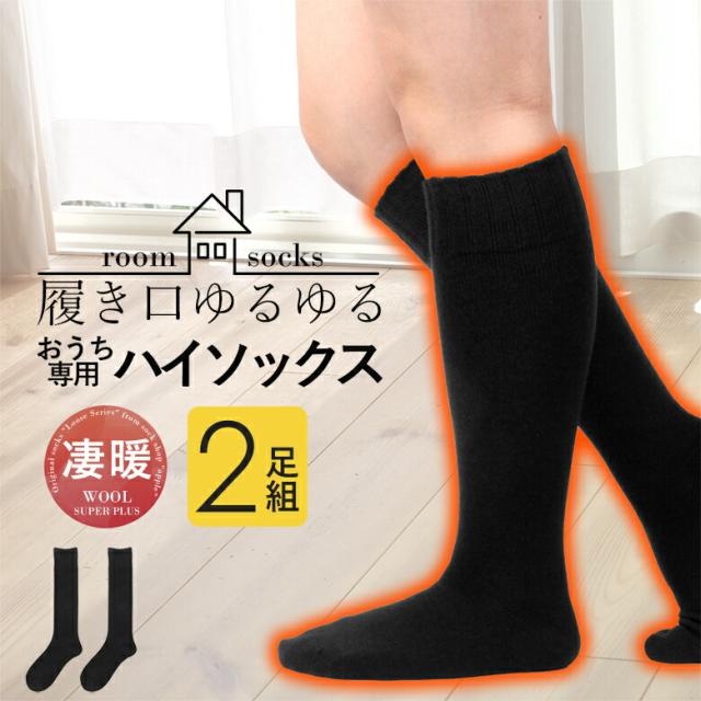 靴下 2足 暖かい あったかい 防寒 ロング 長め レディース ゆったり靴下 ウール 日本製 レディース ゆったり ゆるい 黒 ソックス 冷え性 冷え対策 羊毛混 冬 ルームソックス 締付けない プレゼント 暖かい靴下 室内 高齢者 介護用 部屋 しもやけ 防止 防寒靴下 足のむくみ