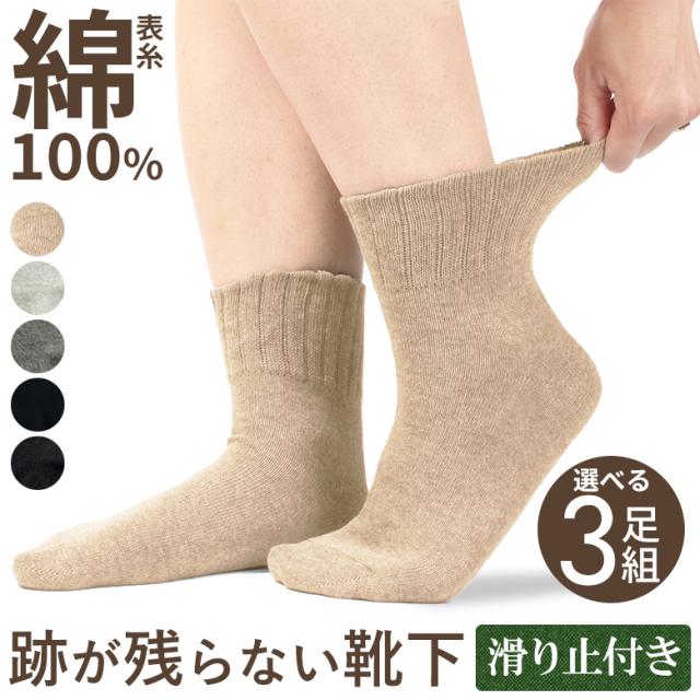 匠のゆったり靴下 靴下 レディース 選べる3足セット 口ゴムなし みたいな履き心地 日本製 綿100% 綿 100 滑り止め 脱げない 口ゴム ゆったり ゆるい くるぶし くるぶしソックス ルームソックス ソックス 冷え対策 締付けない 滑り止め靴下 高齢者 介護用