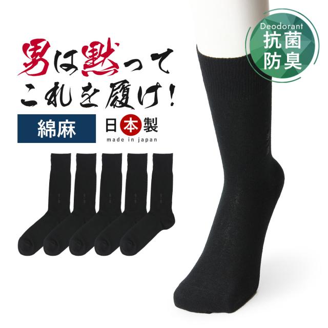 男は黙ってこれを履け! 靴下 メンズ 綿麻 臭わない 蒸れない 5足 セット ソックス 夏 消臭靴下 麻 消臭 防臭 男性 ビジネス 黒 薄手 薄い ビジネスソックス 足 臭い 足の臭い 臭く ならない 涼しい 丈夫な靴下 抗菌 通気性 ずり落ちない 夏用 mens 24-27cm 送料無料
