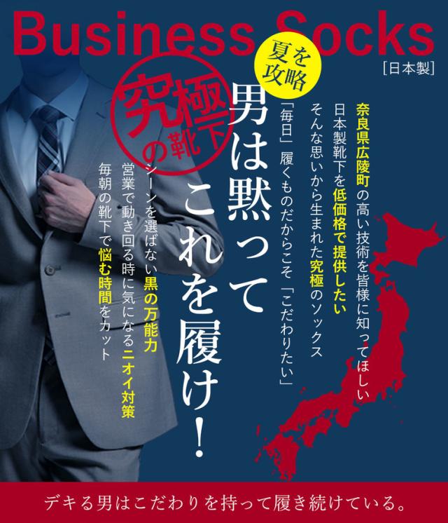国内一の靴下生産の街、奈良県広陵町で生まれたビジネスソックスです。