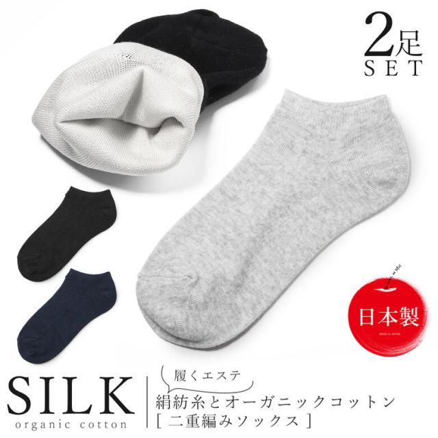 【履くエステ】 【くるぶしが見える丈】 2重編みソックス 二重編み靴下 シルク オーガニックコットン 靴下 レディース メンズ 男性 女性 厚手 暖かい 綿 綿100% 保湿 ソックス かかとケア つるつる 吸水 丈夫 蒸れない 涼しい 夏 冬 スニーカー イン スニーカーイン 夏 夏用