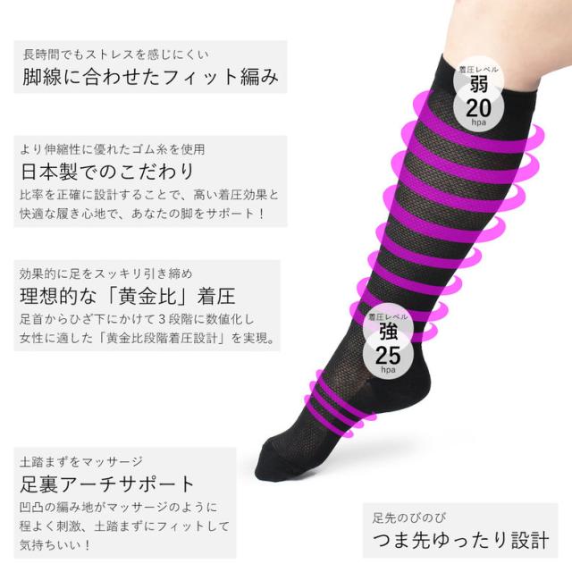 | 商品名 | 黄金比段階着圧設計ハイソックス |